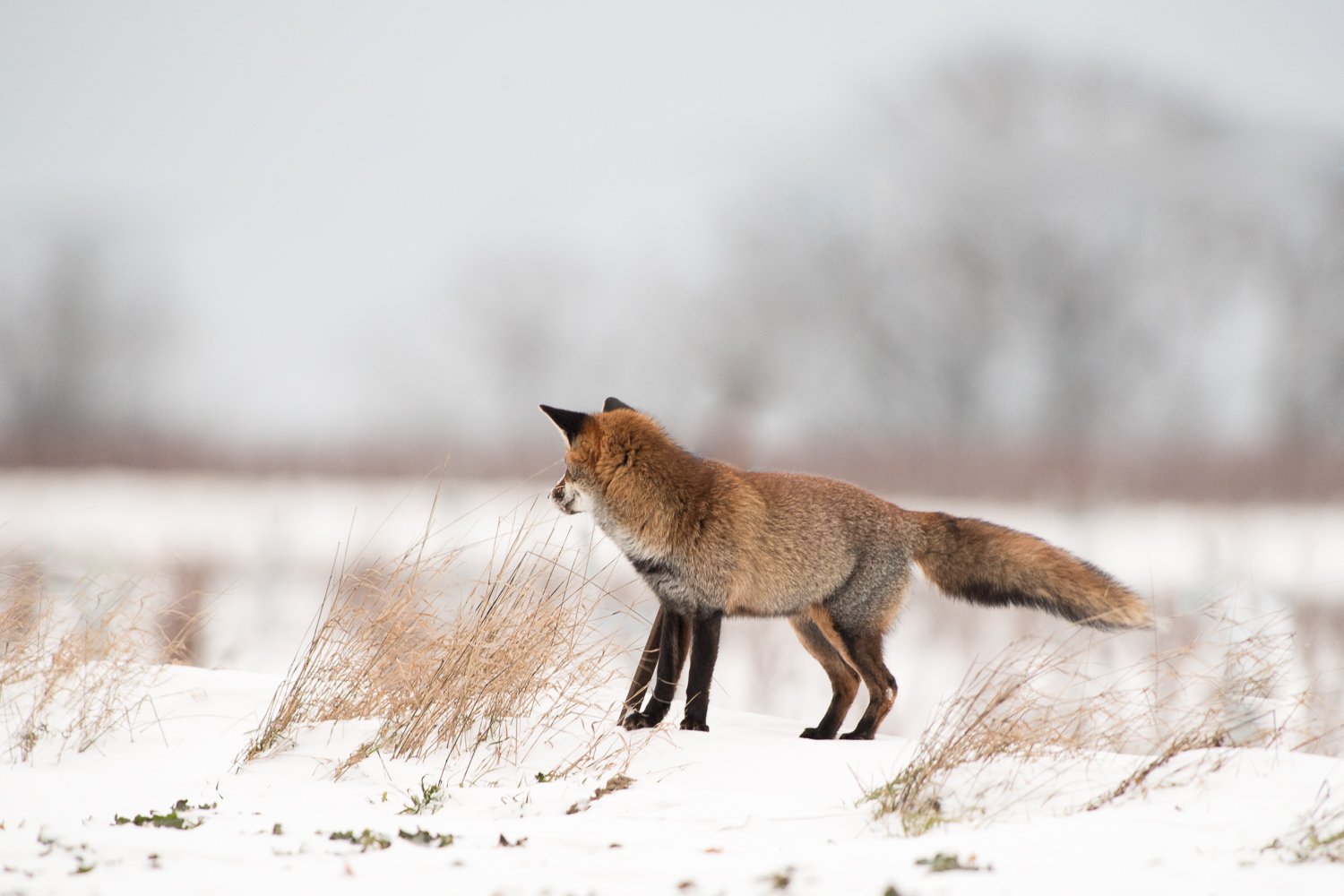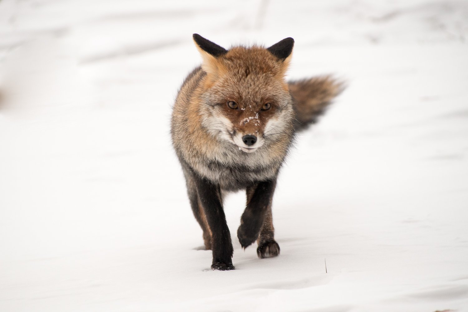 De retour sur les traces de maître Goupil, la belle surprise fût cette rencontre avec ce majestueux renard. Il a finit par “foncer” droit sur mon affût sans me repérer!